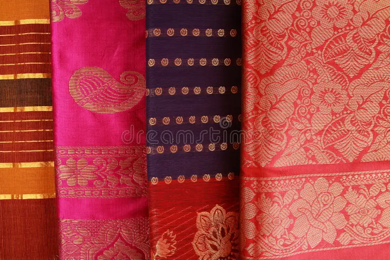 This saree is a luxurious testament to India’s timeless weaving traditions, blending opulence, grace, and artistry into a single masterpiece. Crafted from premium silk, it offers a rich, smooth texture that drapes elegantly, enhancing the wearer’s natural grace. The body of the saree showcases a deep, regal purple base adorned with intricate golden floral motifs woven with precision using pure zari threads. These motifs shimmer gently as light plays across the fabric, adding depth and sophistication to the overall look. The lower border transitions into a rich mustard-gold panel, creating a bold yet harmonious contrast that elevates the saree’s grandeur. The border is further embellished with stylized leaf patterns in deep purple, giving it a distinctive signature touch. The weaving quality reflects the skill of master artisans, ensuring durability without compromising softness. The fabric’s natural sheen makes it perfect for festive occasions, weddings, and grand celebrations. When draped, the saree exudes an aura of royalty, making it ideal for women who wish to combine tradition with elegance. The golden zari work along the borders frames the saree beautifully, ensuring each fold and pleat stands out. The pallu is designed to be a statement in itself, offering a lavish spread of intricate patterns and vibrant hues. Its timeless combination of purple and mustard-gold ensures it never goes out of style, suitable for both daytime functions and evening galas. The saree pairs seamlessly with traditional gold jewellery, but can also be styled with modern statement pieces for a fusion look. The detailing is not only aesthetic but symbolic, with the floral and leaf motifs representing prosperity, beauty, and nature’s bounty. Each element has been thoughtfully integrated to create visual harmony. The drape glides effortlessly over the skin, offering both comfort and style for long hours of wear. This piece is versatile, fitting well into bridal collections or festive wardrobes. It is more than just attire—it’s a keepsake that can be cherished and passed down through generations. The combination of rich hues and luminous zari work makes it photogenic, ensuring every photograph captures its splendor. It is ideal for significant life events where making a statement matters. The craftsmanship ensures that the saree retains its beauty even after years of use. Its design reflects the cultural heritage of Indian textiles while appealing to contemporary tastes. Each thread tells a story of dedication, tradition, and creativity. The saree is easy to drape and holds pleats perfectly, enhancing the overall look. Its luxurious feel is matched by its visual appeal, making it a must-have for any connoisseur of fine fabrics. Owning such a saree means owning a piece of living art. The colors are chosen to complement a variety of skin tones, adding to its universal charm. Its zari patterns catch light beautifully, creating a radiant glow with every movement. Whether worn for religious ceremonies, festive gatherings, or grand receptions, it promises to make the wearer the center of attention. With proper care, this silk saree will remain a timeless treasure in any wardrobe. It embodies a perfect balance of tradition, craftsmanship, and style—six yards of pure elegance that celebrates the artistry of Indian weaves.